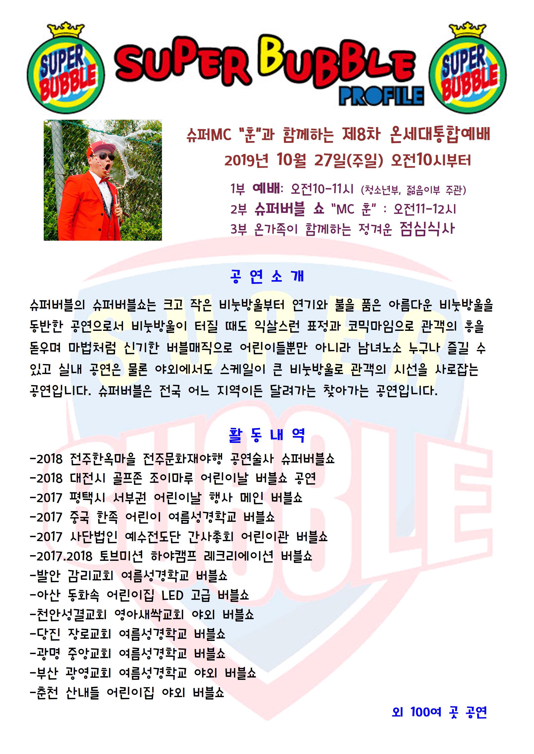 제8차 온세대통합예배 및 MC"훈"과 함께하는 슈퍼버블쇼