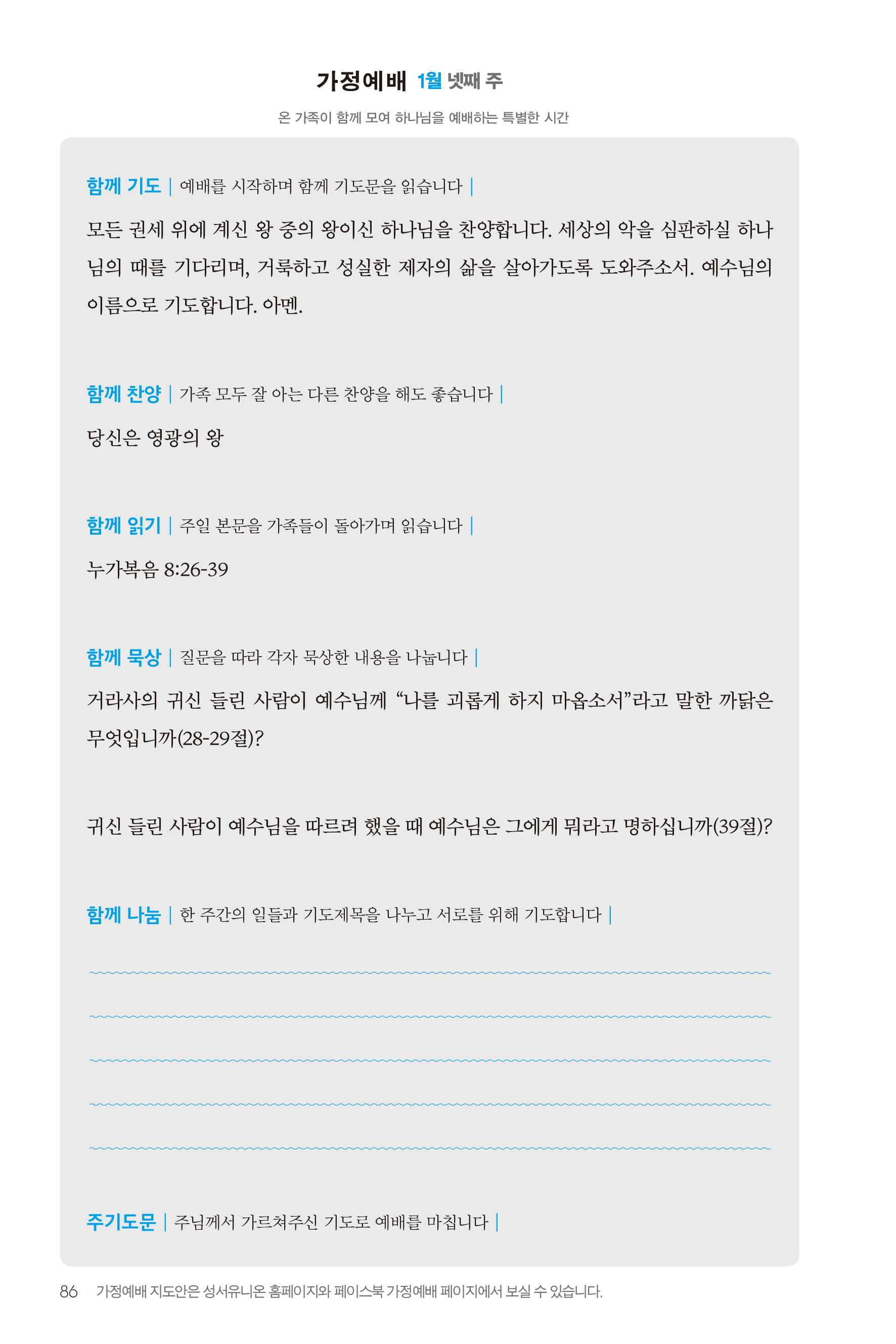매일성경을 이용하여 드리는 주일가정예배 (2021년 1월 24일)