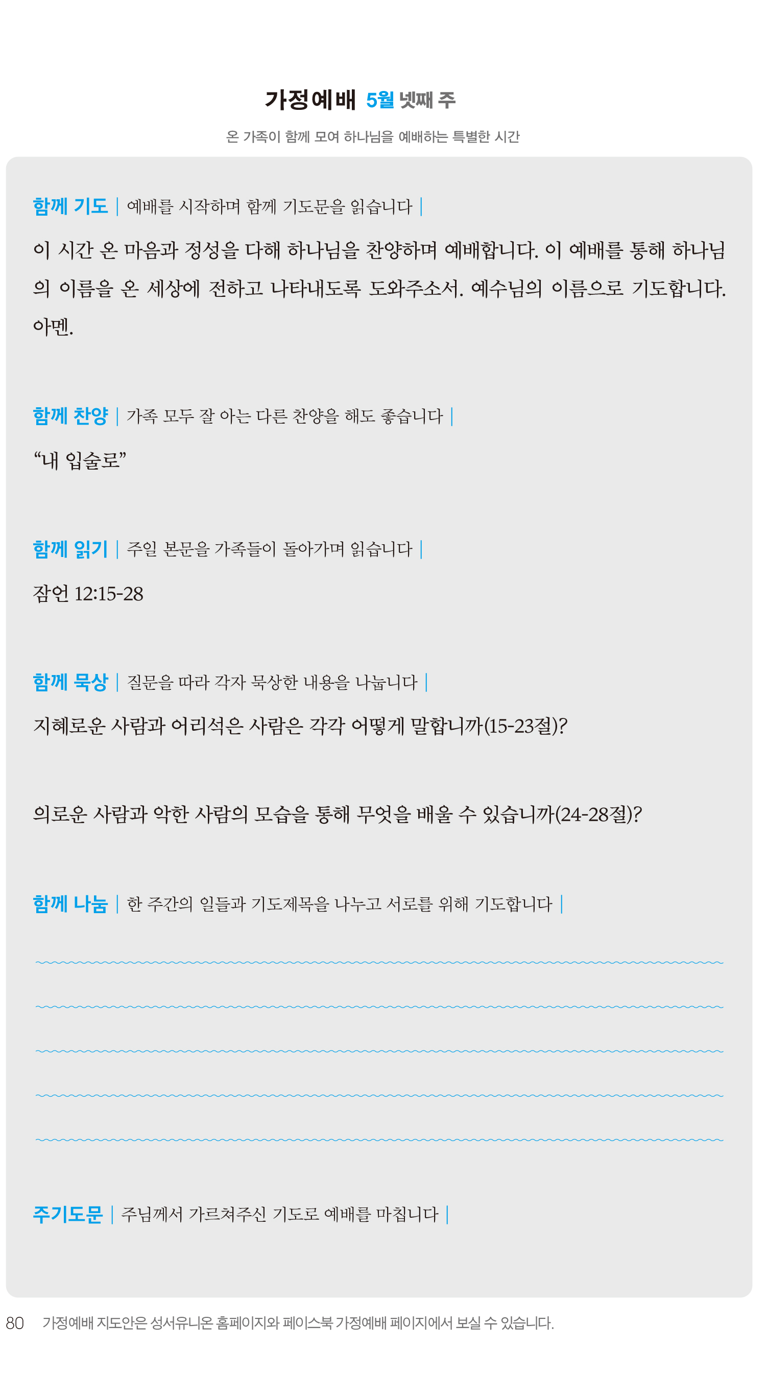 2) 순서지의 내용을 따라 가정예배를 드립니다.
