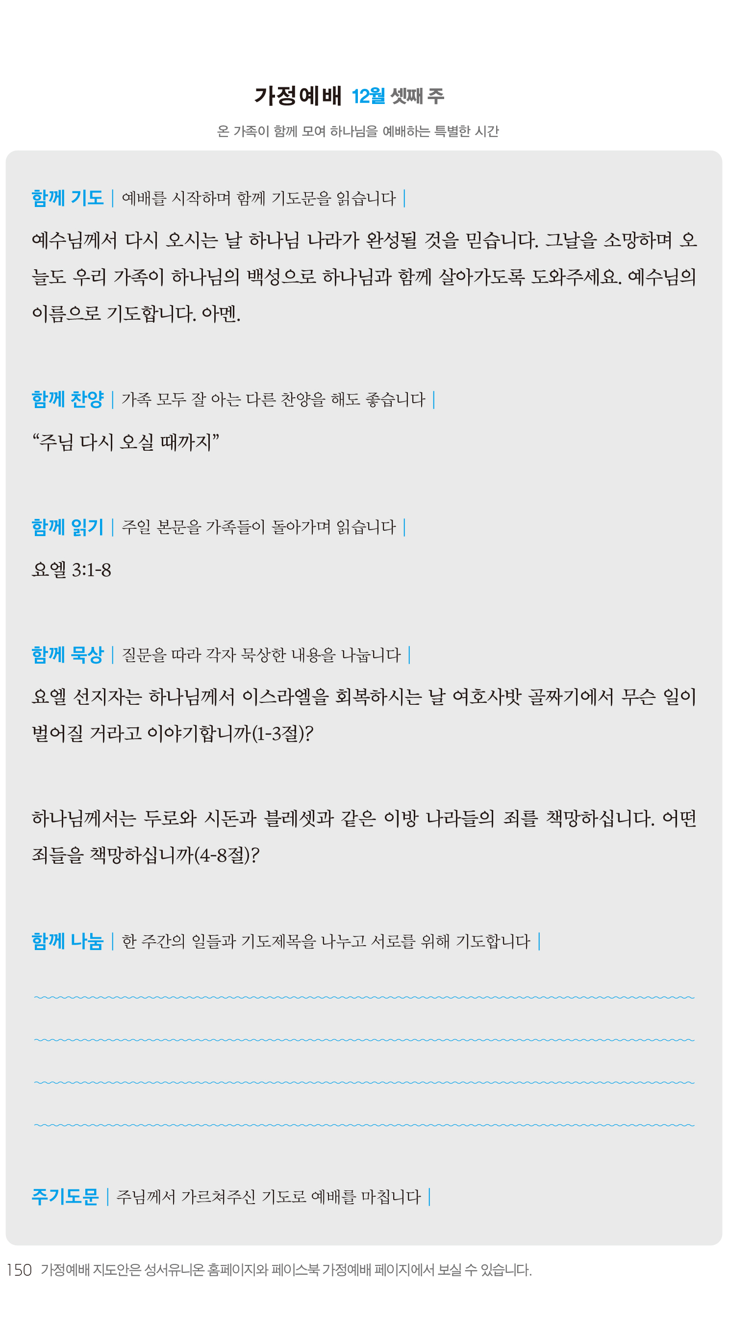 2) 순서지의 내용을 따라 가정예배를 드립니다.