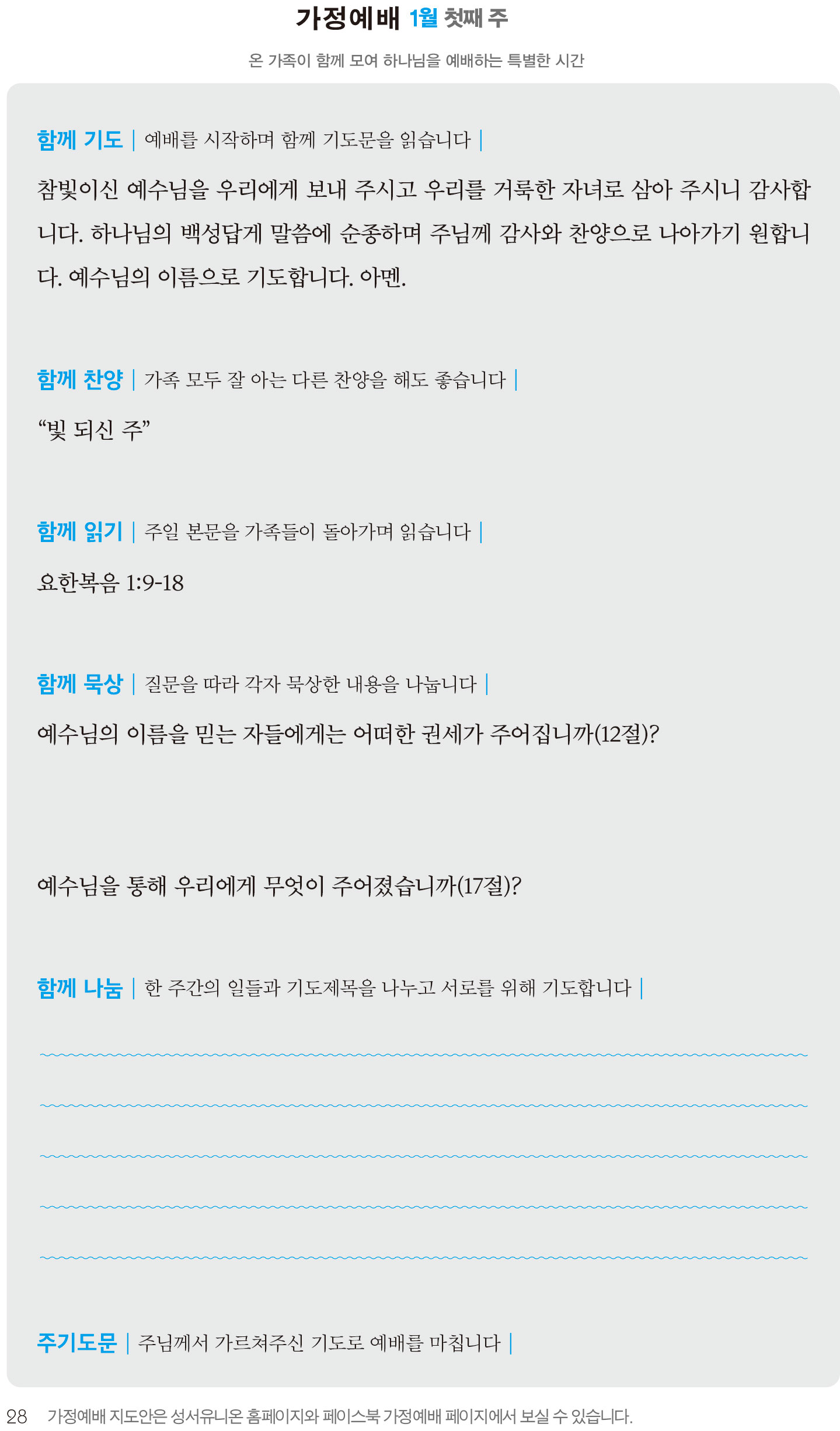 2) 순서지의 내용을 따라 가정예배를 드립니다.