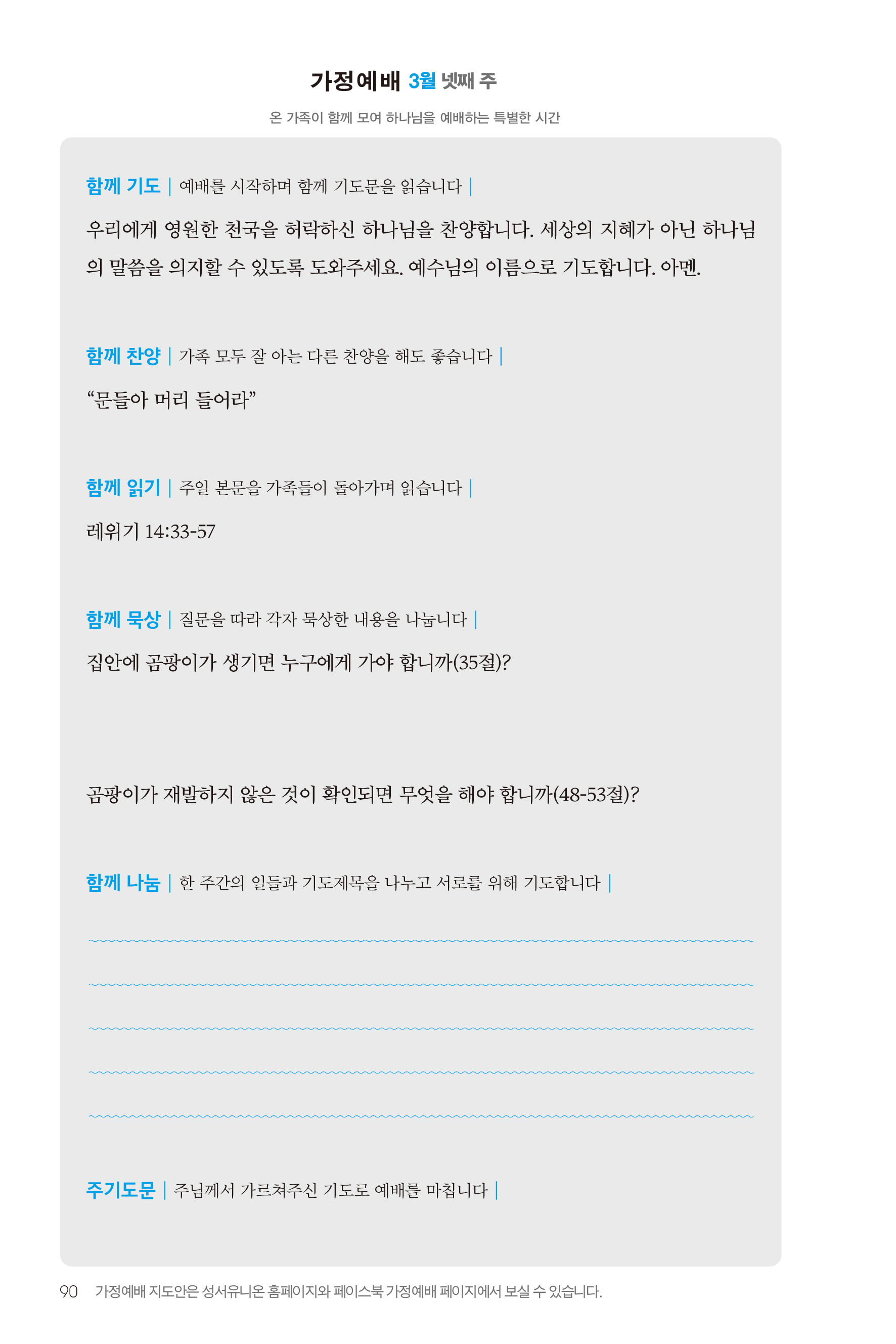 2) 순서지의 내용을 따라 가정예배를 드립니다.