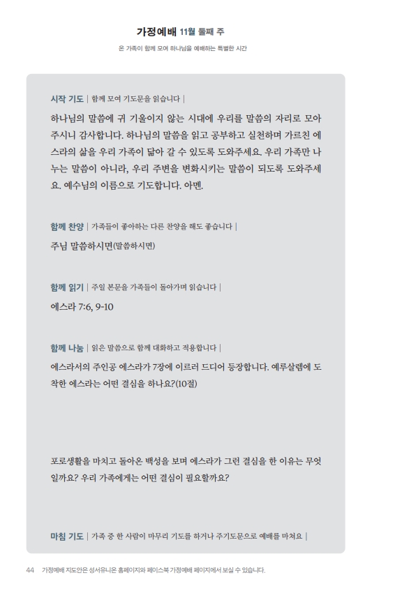 2) 순서지의 내용을 따라 가정예배를 드립니다.
