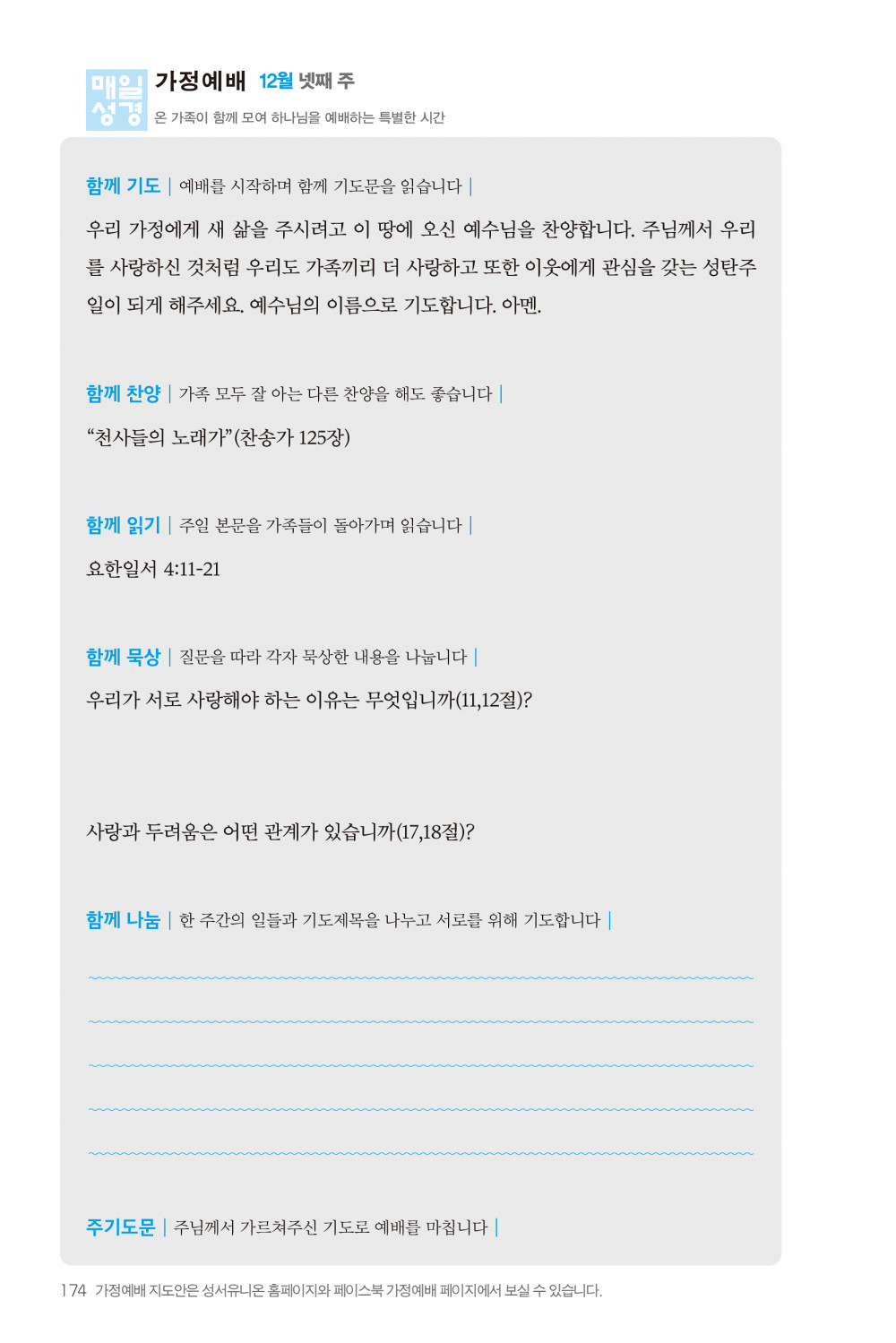 2) 순서지의 내용을 따라 가정예배를 드립니다.