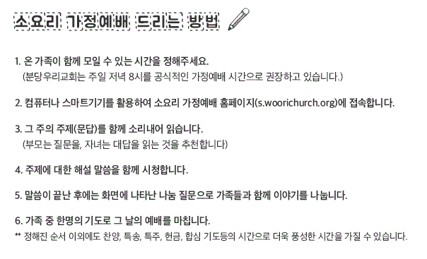 (나눔이 마치면 기도로 예배를 마무리해주세요)