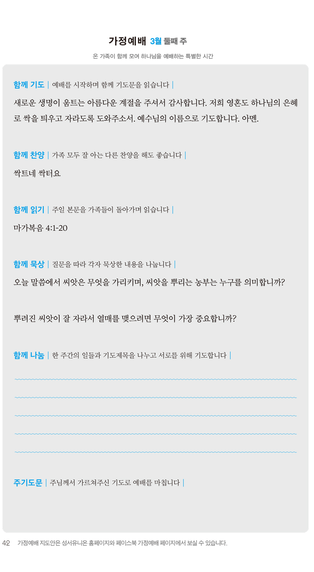[매일성경 가정예배지] 2020년 3월 8일 > 남천안 새소식