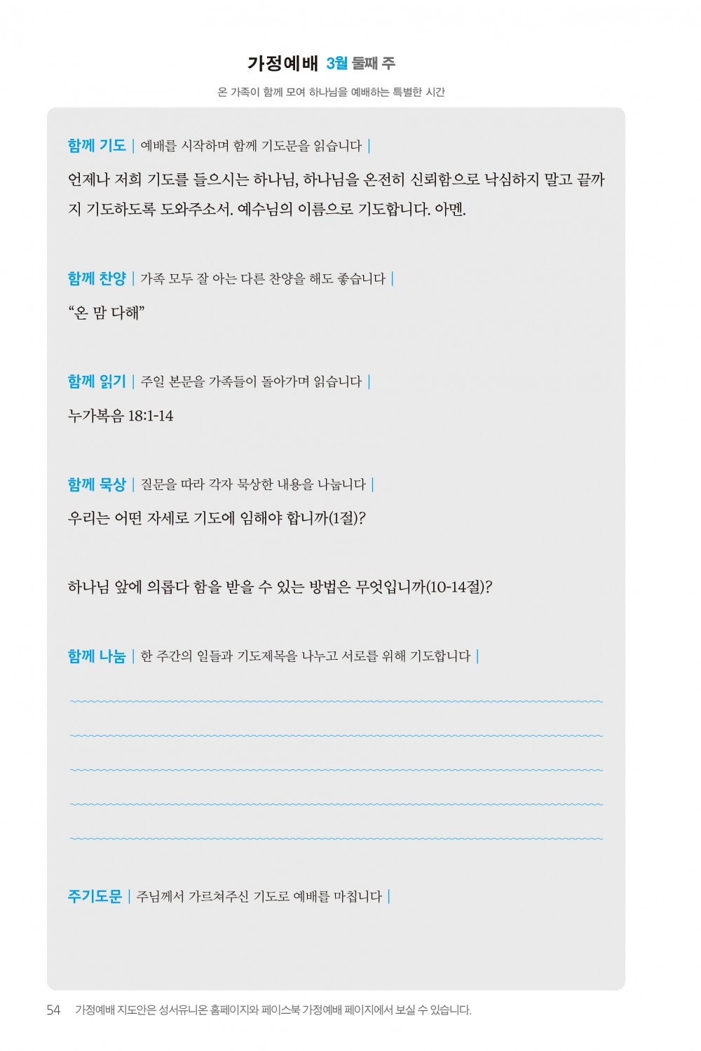 2) 순서지의 내용을 따라 가정예배를 드립니다.