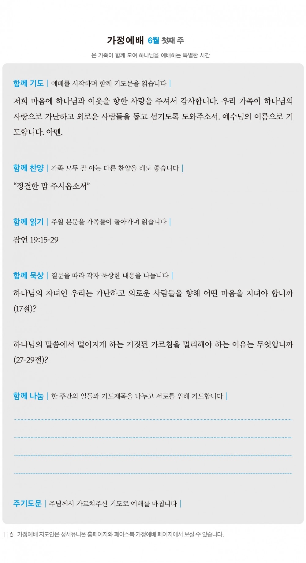 2) 순서지의 내용을 따라 가정예배를 드립니다.