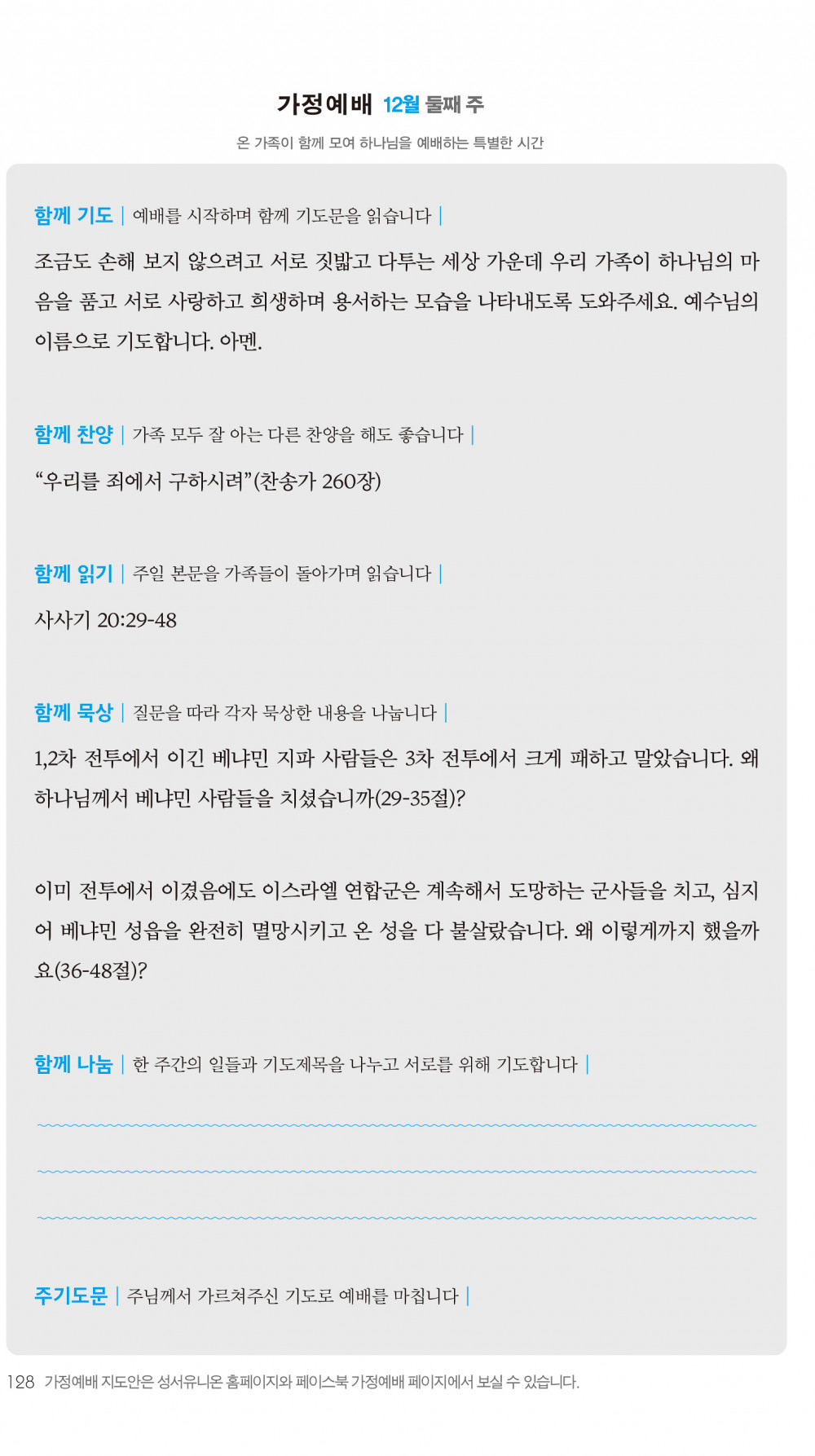 2) 순서지의 내용을 따라 가정예배를 드립니다.