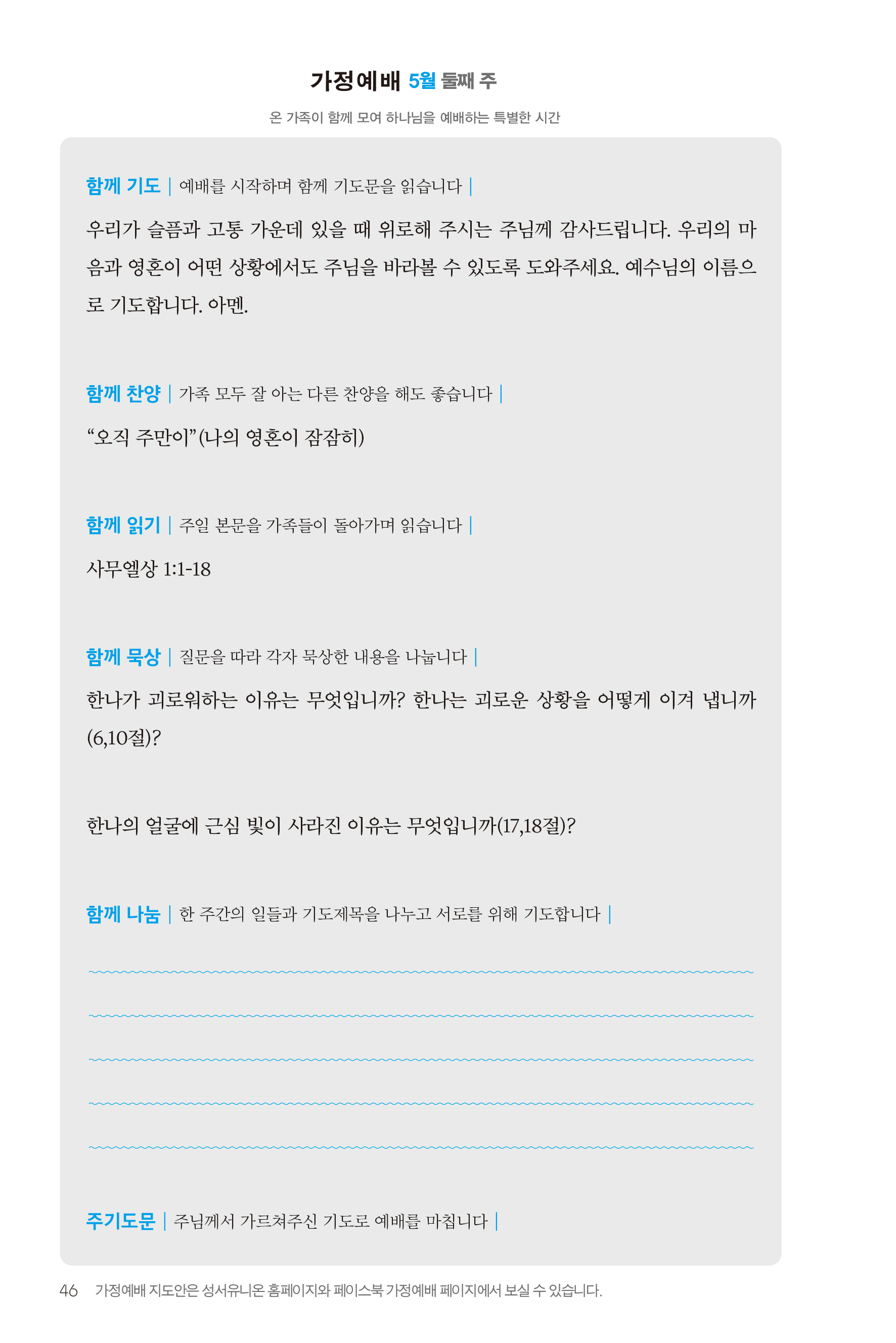 2) 순서지의 내용을 따라 가정예배를 드립니다.
