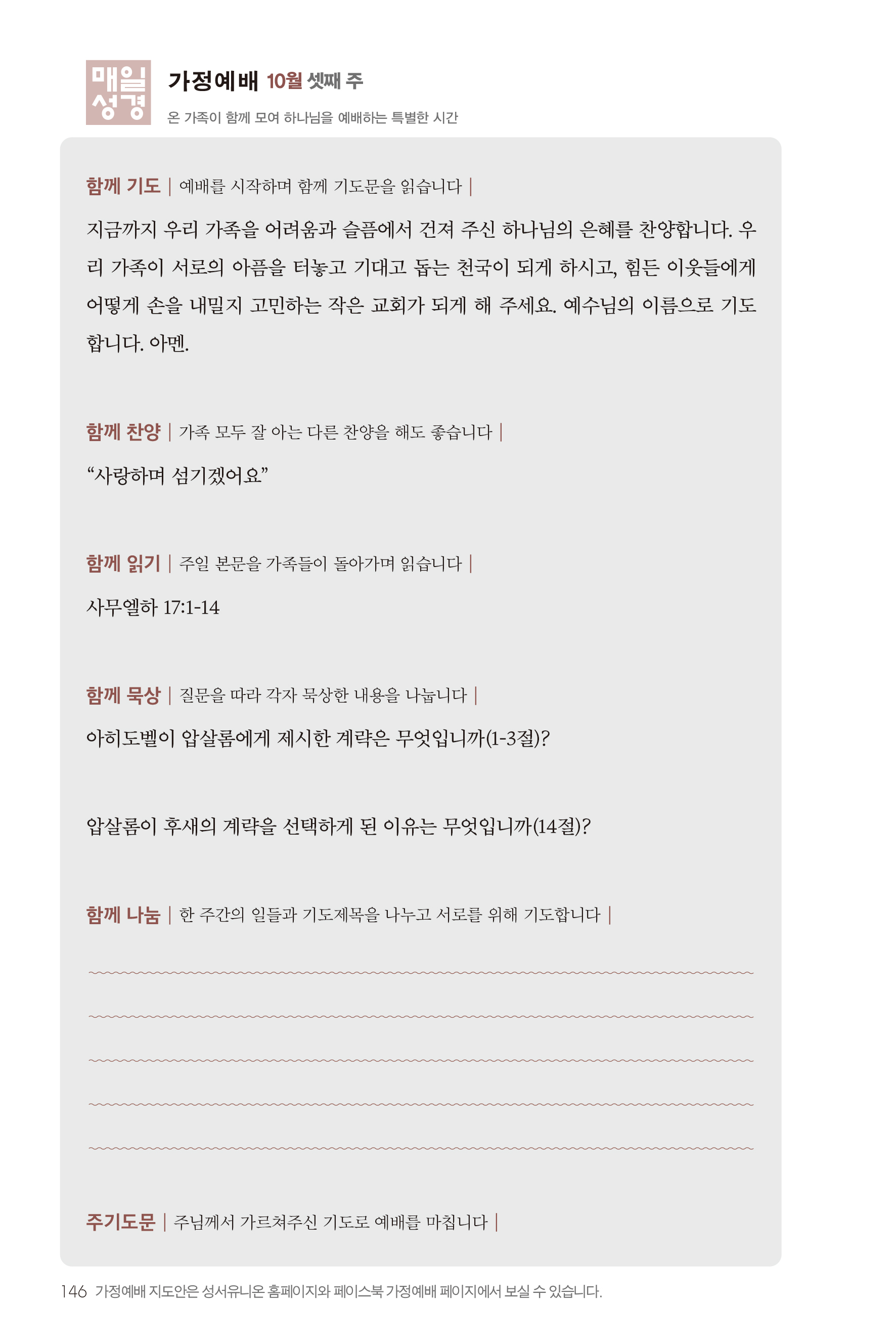 매일성경을 이용하여 드리는 주일가정예배 (2022년 10월 9일)