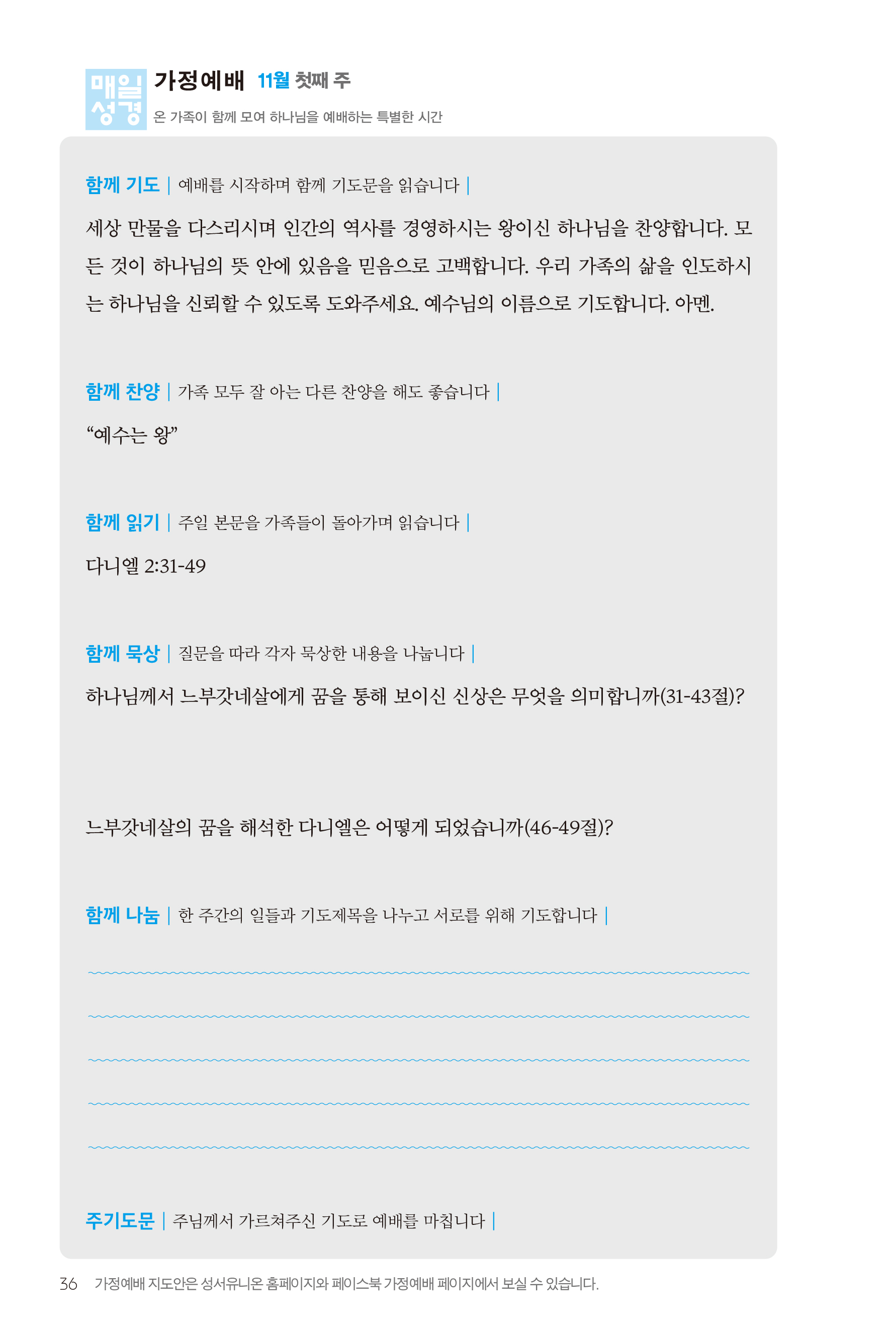 매일성경을 이용하여 드리는 주일가정예배 (2022년 11월 6일)