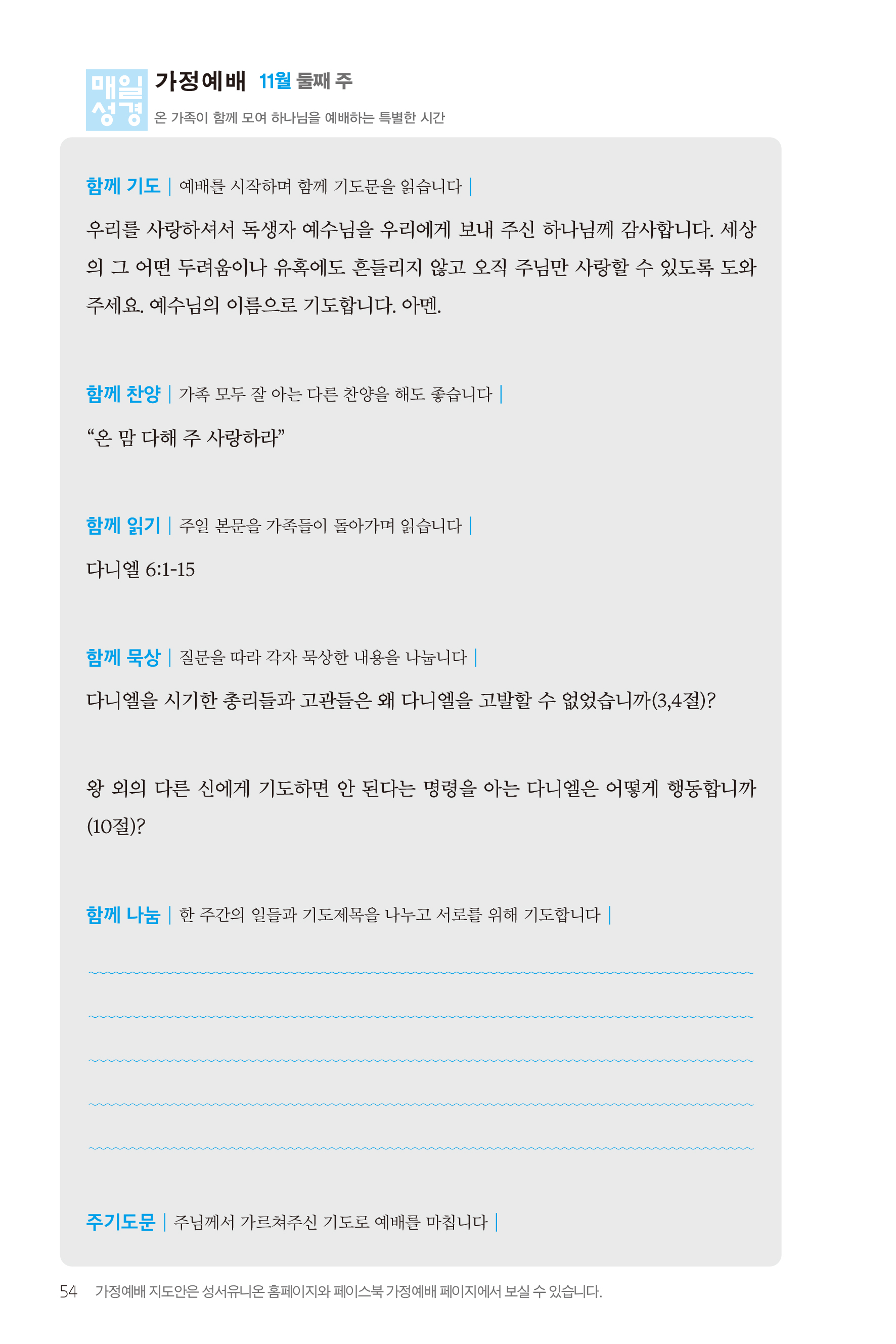 매일성경을 이용하여 드리는 주일가정예배 (2022년 11월 13일)