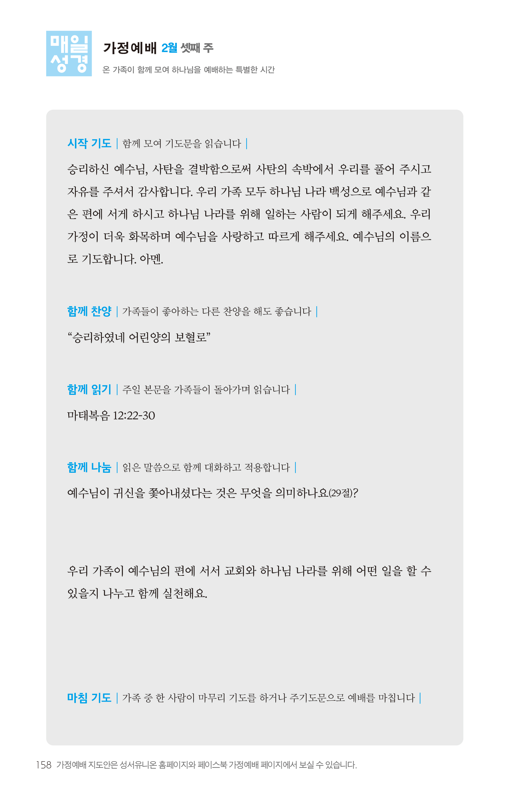 매일성경을 이용하여 드리는 주일가정예배 (2023년 2월 19일)