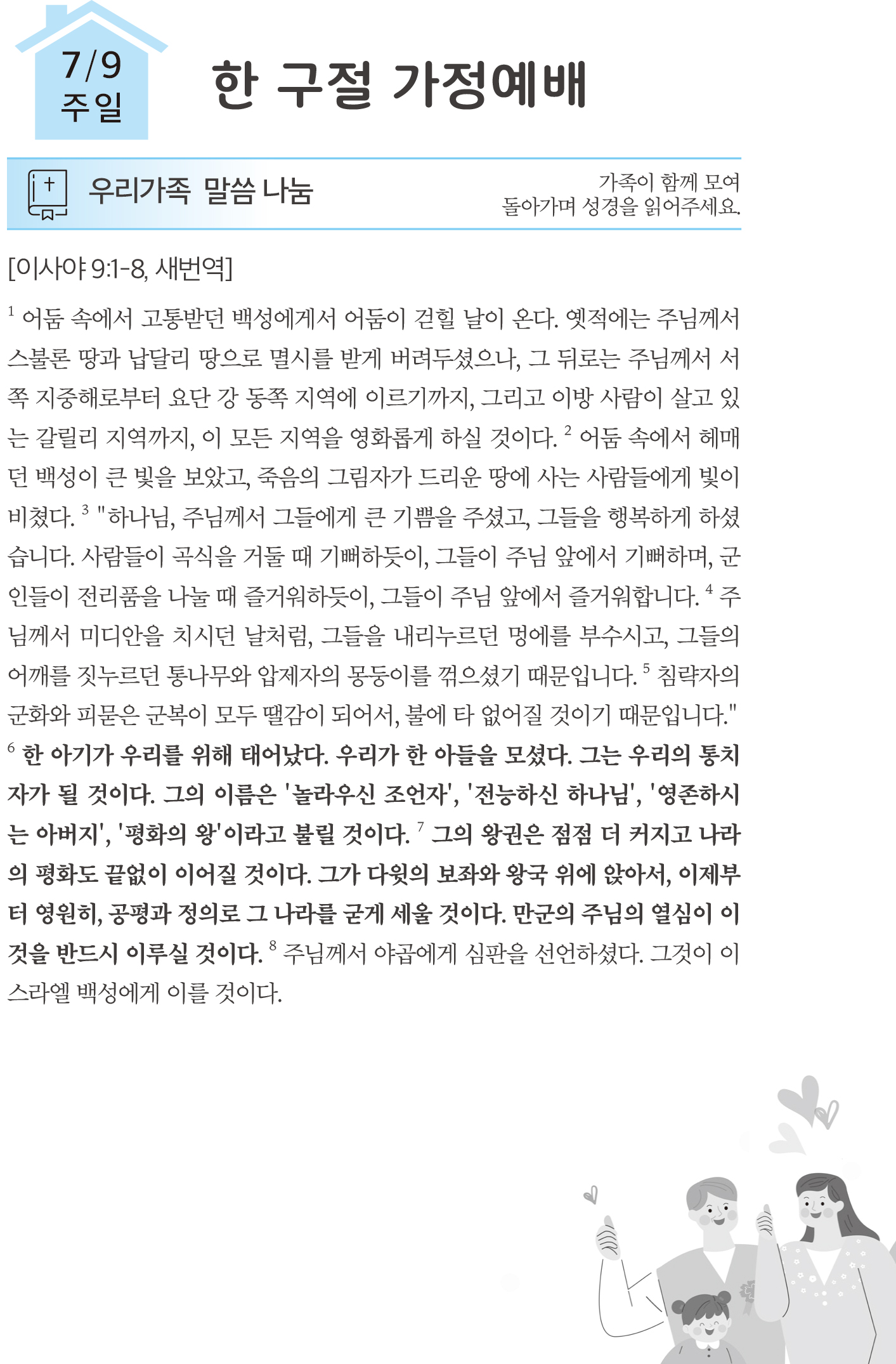 한구절 가정예배 순서지 (2023년 7월 9일)