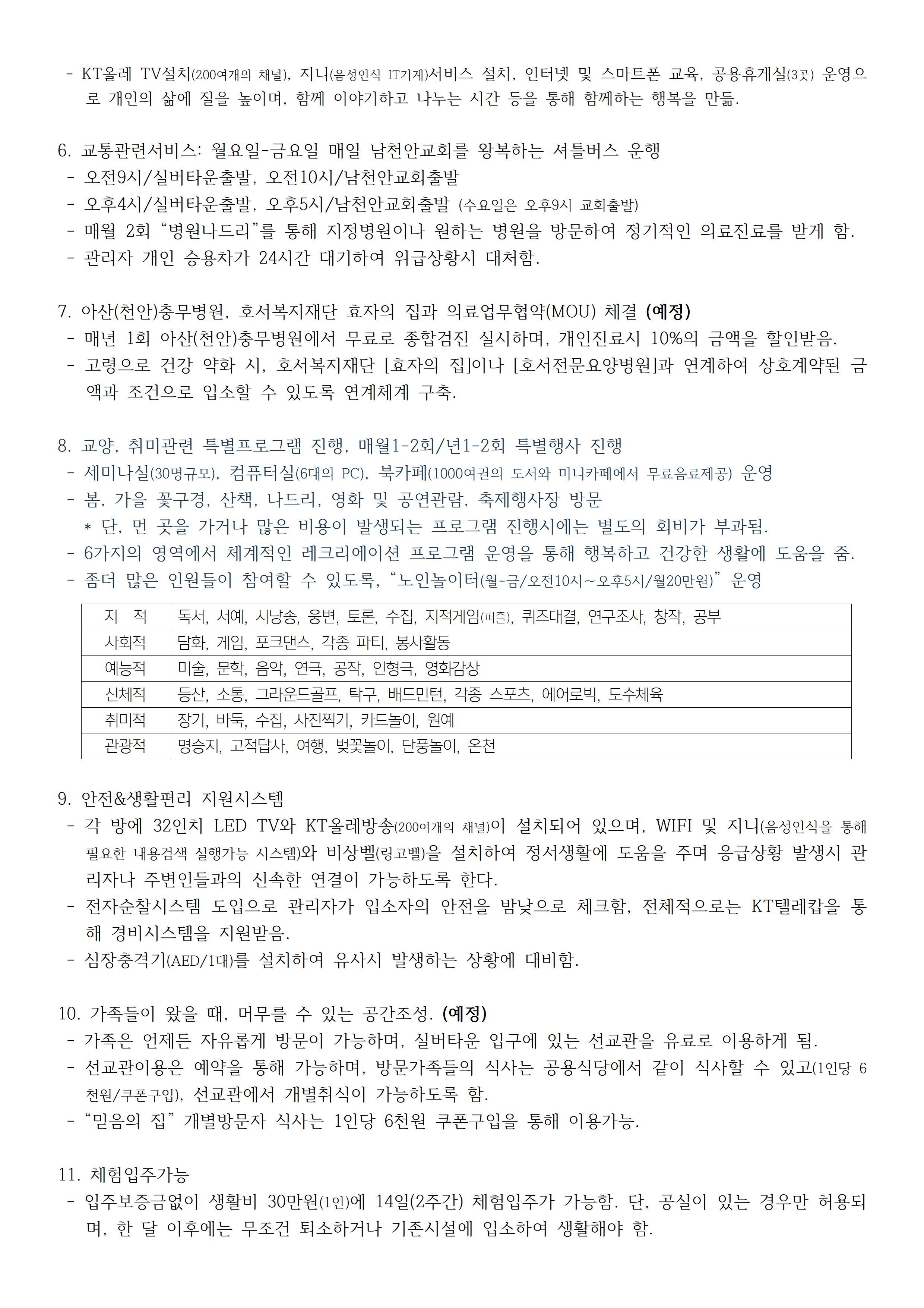 - “믿음의 집” 입주와 어르신놀이터에 관해서는 041)841-9122이나 교역자에게 문의하시기 바랍니다.