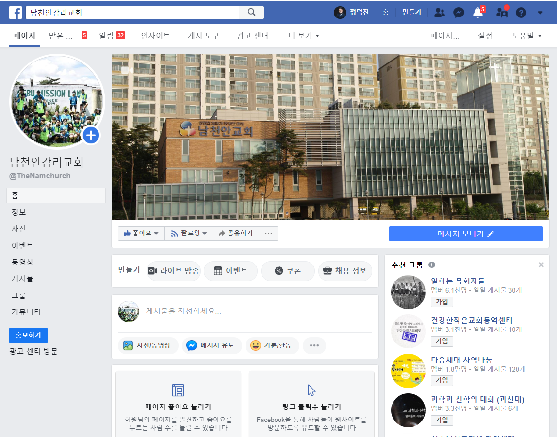 인터넷 주소창에 페이스북은 아래 주소를 https://www.facebook.com/TheNamchurch/유투브는 아래 주소를 https://www.youtube.com/TheNamchurch/클릭하시거나 입력하셔서 페이스북이나 유투브를 통해서 생방송으로 중계되는 예배를 시청하실 수 있습니다. 유투브로 시청하시는 분은 꼭 "구독"을 눌러주세요.
