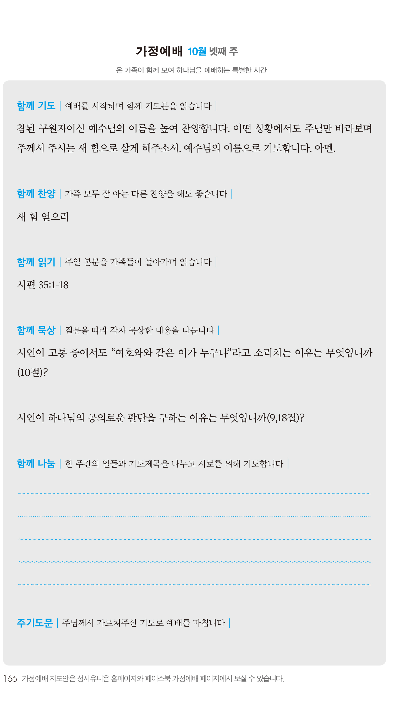 2) 순서지의 내용을 따라 가정예배를 드립니다.