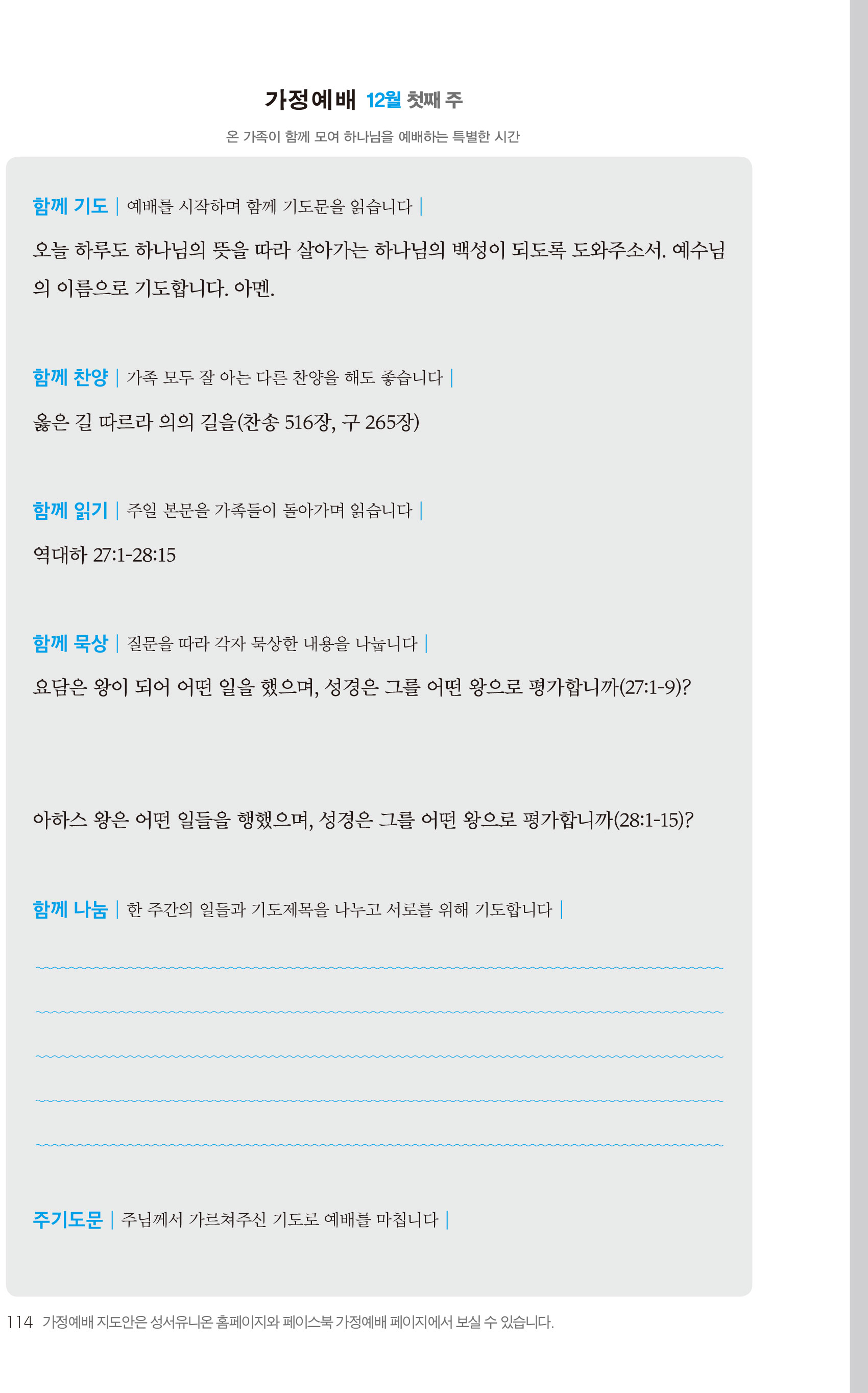 #매일성경교재에 대한 구입과 가정예배 지도안은 성서유니온 홈페이지에서 보실 수 있습니다.