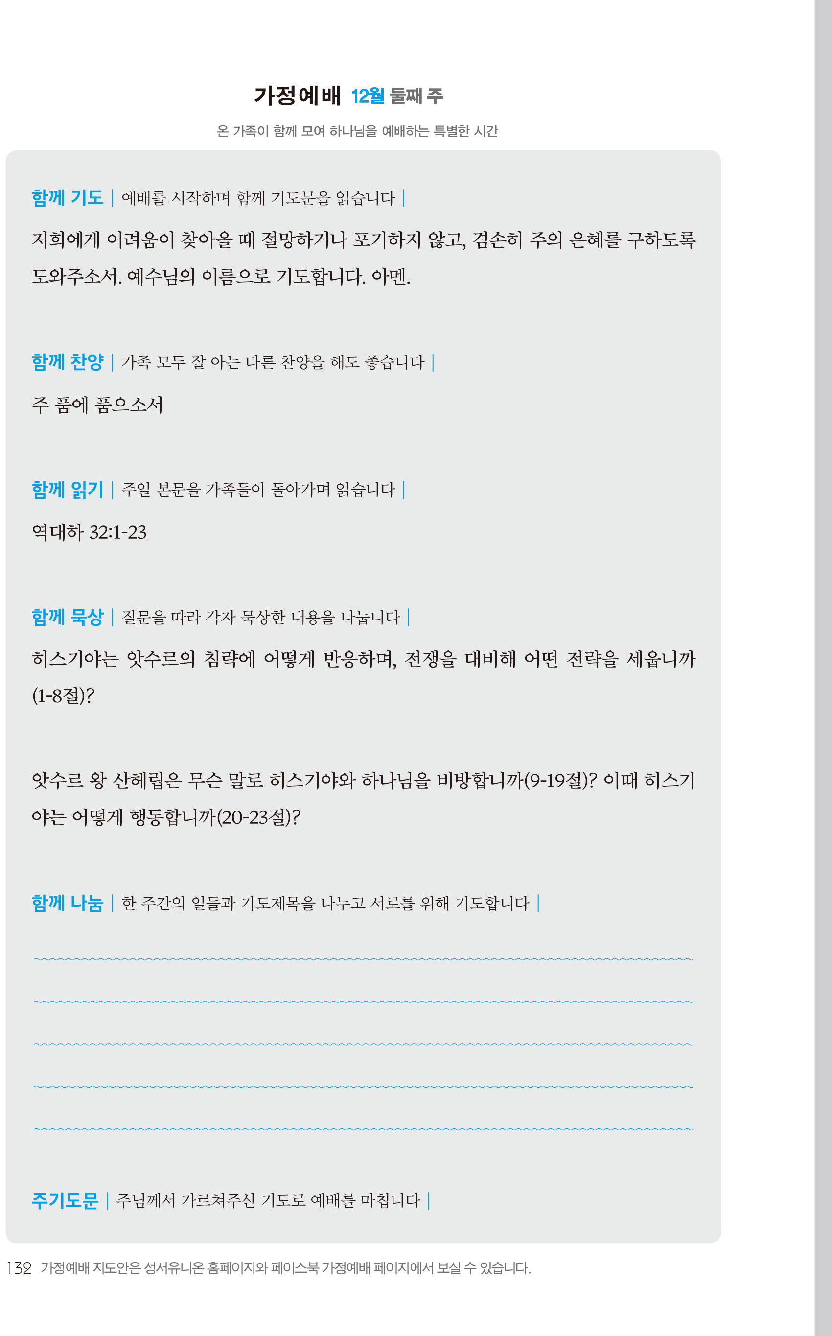 1) 교회홈페이지에서 매일성경 가정예배지를 다운받아 순서지를 준비합니다.