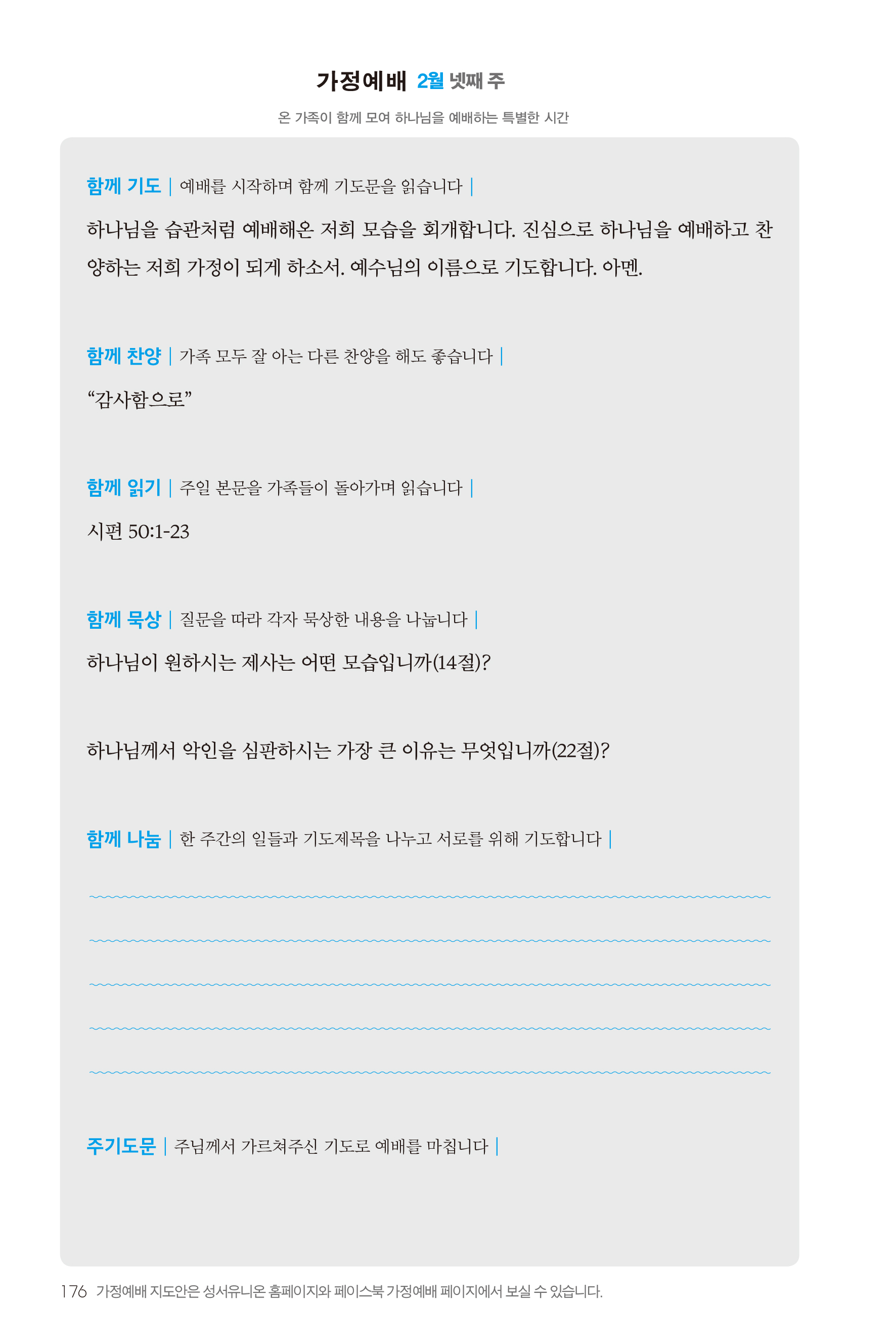 2) 순서지의 내용을 따라 가정예배를 드립니다.