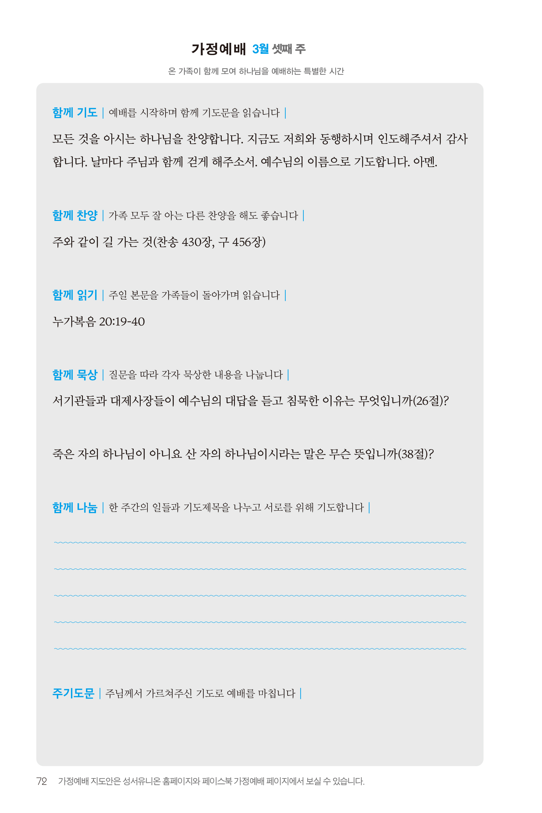 2) 순서지의 내용을 따라 가정예배를 드립니다.