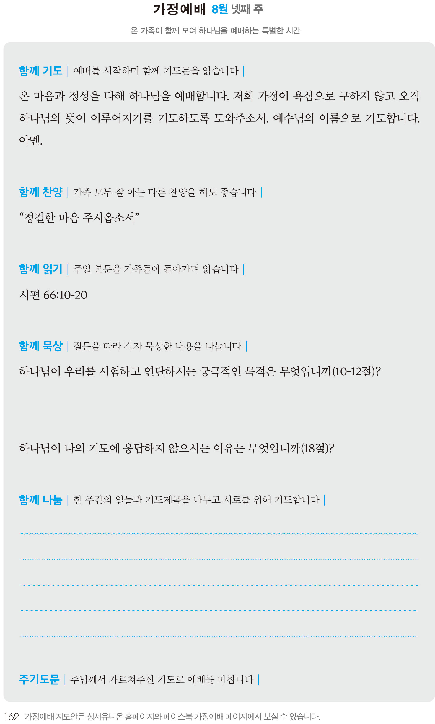 2) 순서지의 내용을 따라 가정예배를 드립니다.
