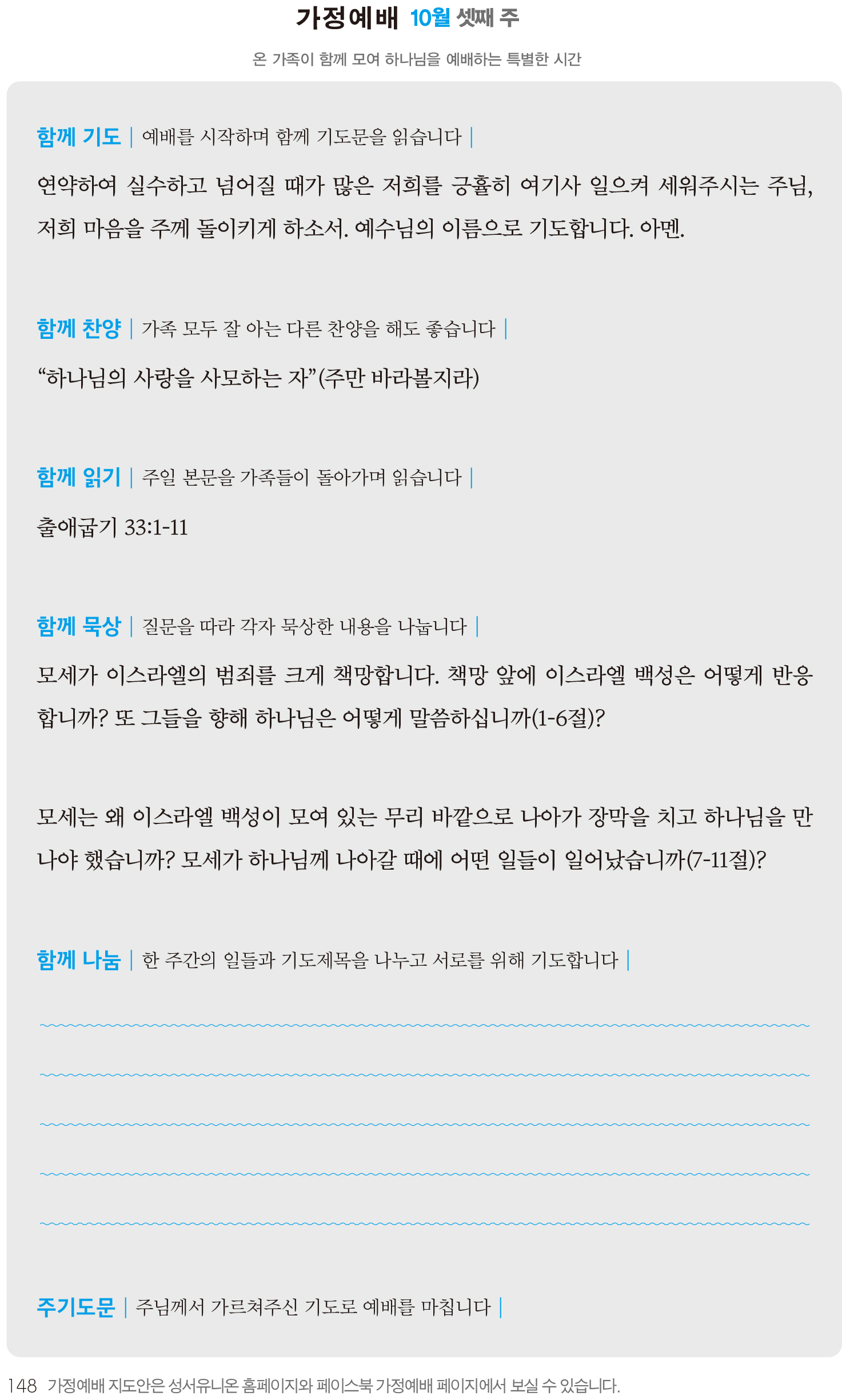 2) 순서지의 내용을 따라 가정예배를 드립니다.