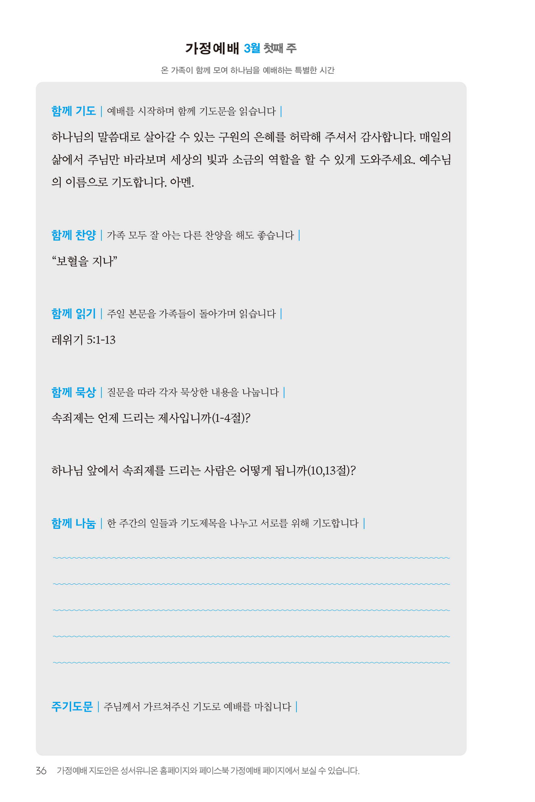 매일성경을 이용하여 드리는 주일가정예배 (2022년 3월 6일)