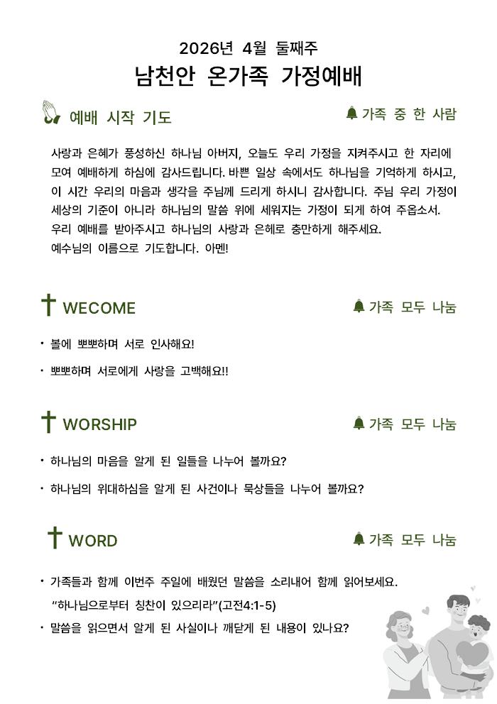 2026년 4월 둘째주 가정예배 영상 > 가정예배