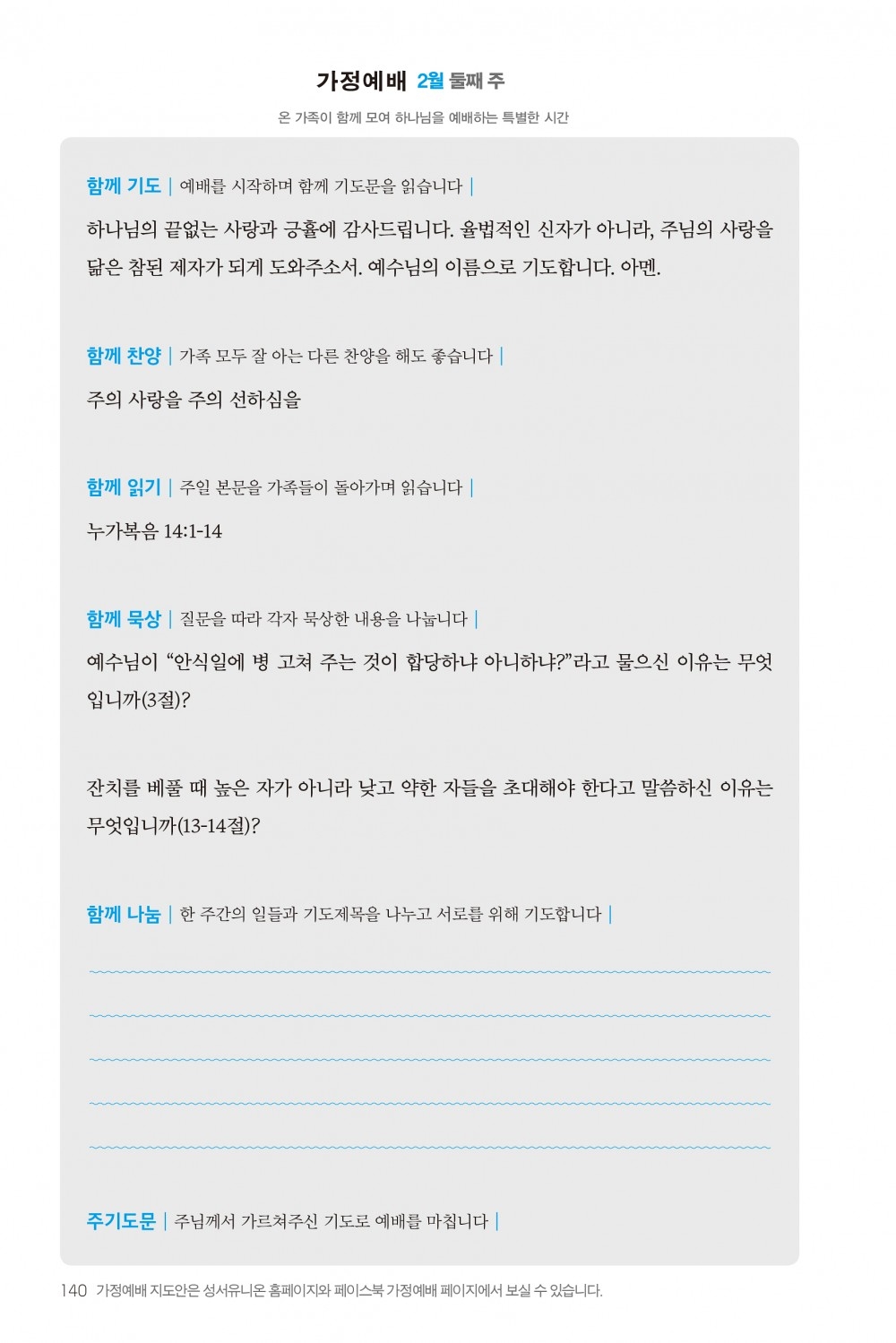 2) 순서지의 내용을 따라 가정예배를 드립니다.