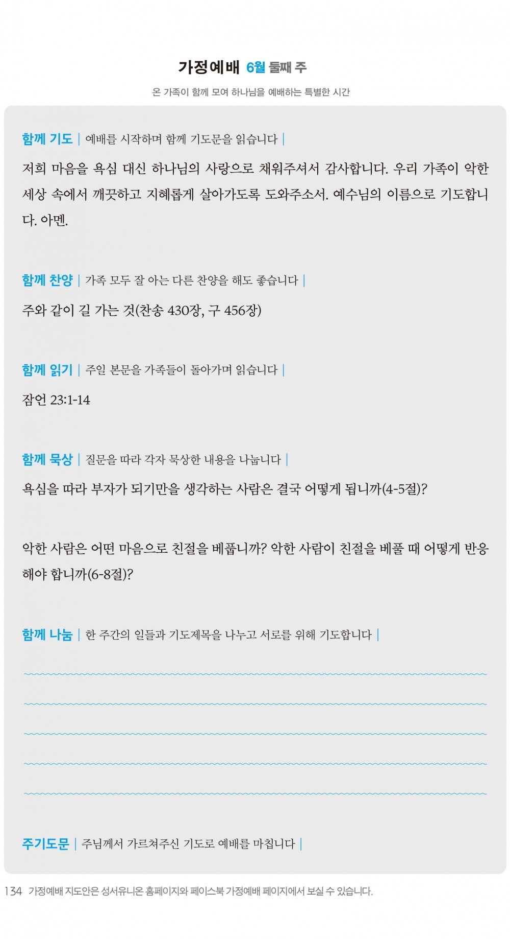 2) 순서지의 내용을 따라 가정예배를 드립니다.
