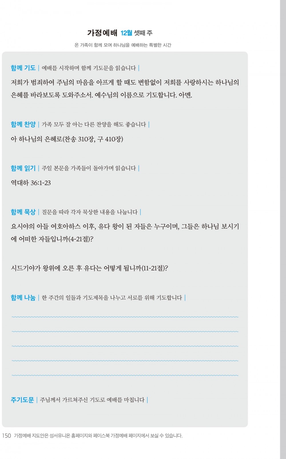 매일성경을 이용하여 드리는 주일가정예배 (2020년 12월 20일)