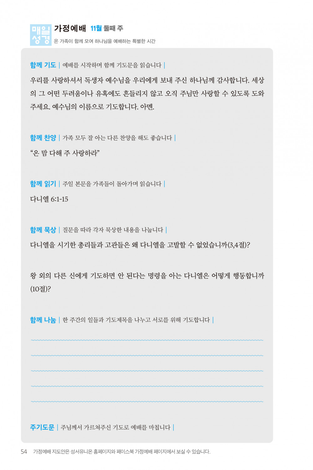 #매일성경교재에 대한 구입과 가정예배 지도안은 성서유니온 홈페이지에서 보실 수 있습니다.