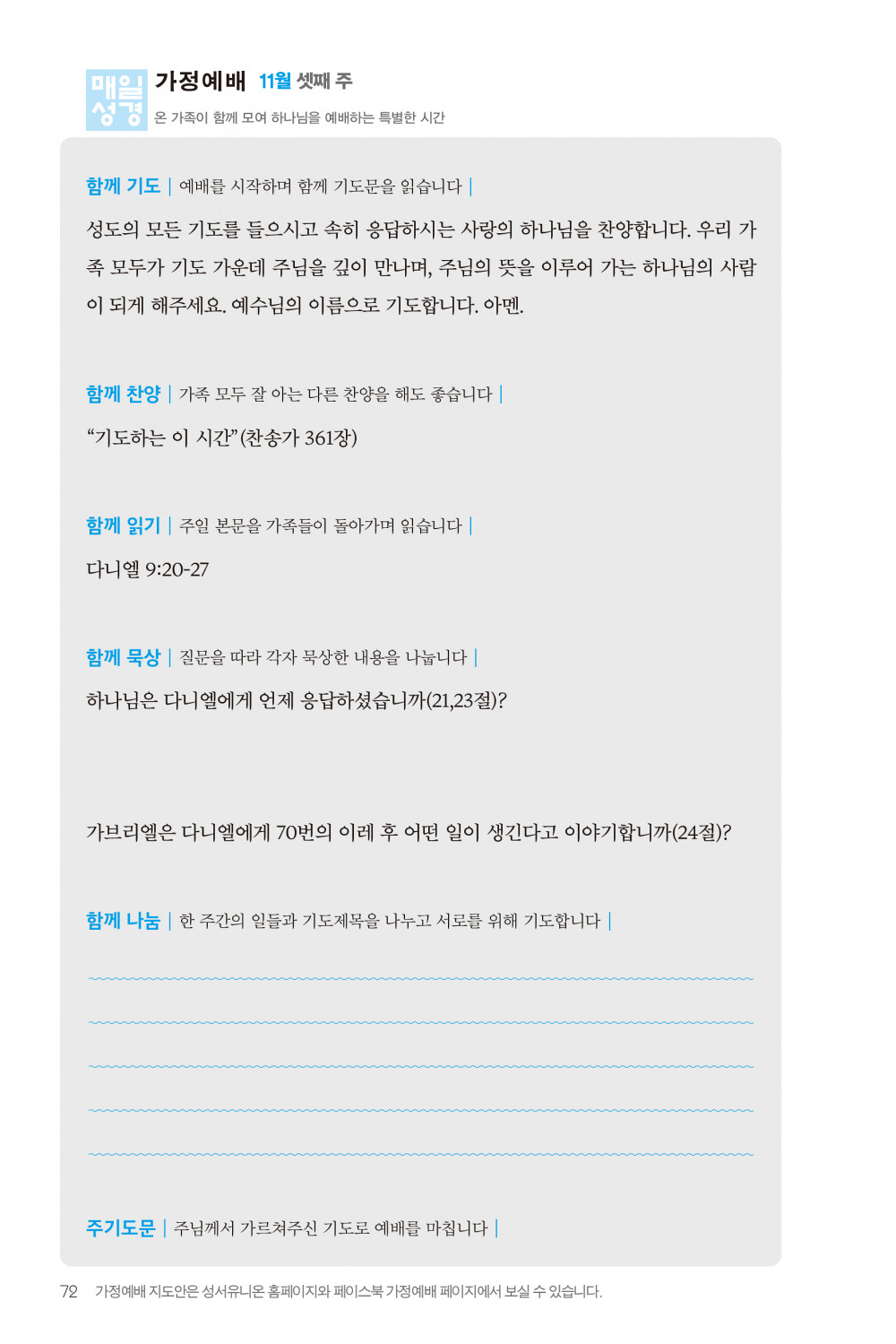 매일성경을 이용하여 드리는 주일가정예배 (2022년 11월 20일)