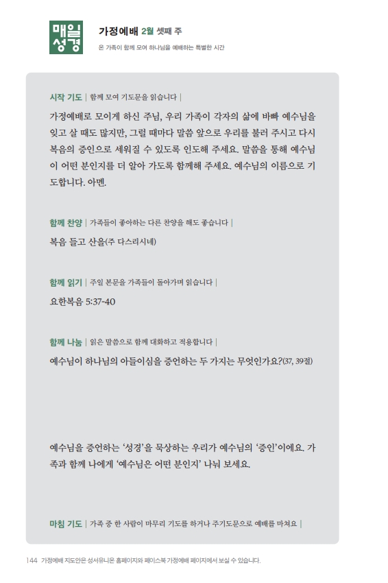 #매일성경교재에 대한 구입과 가정예배 지도안은 성서유니온 홈페이지에서 보실 수 있습니다.