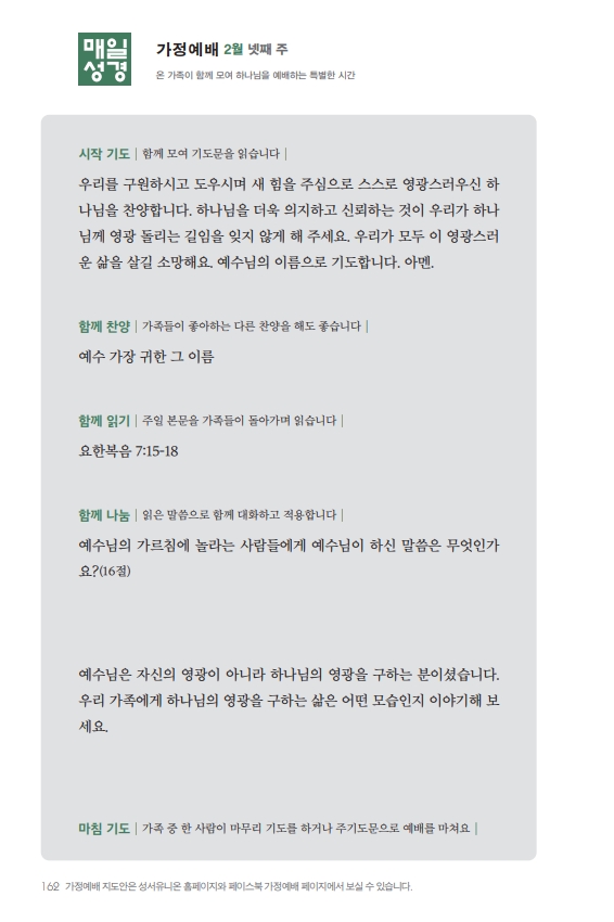 #매일성경교재에 대한 구입과 가정예배 지도안은 성서유니온 홈페이지에서 보실 수 있습니다.