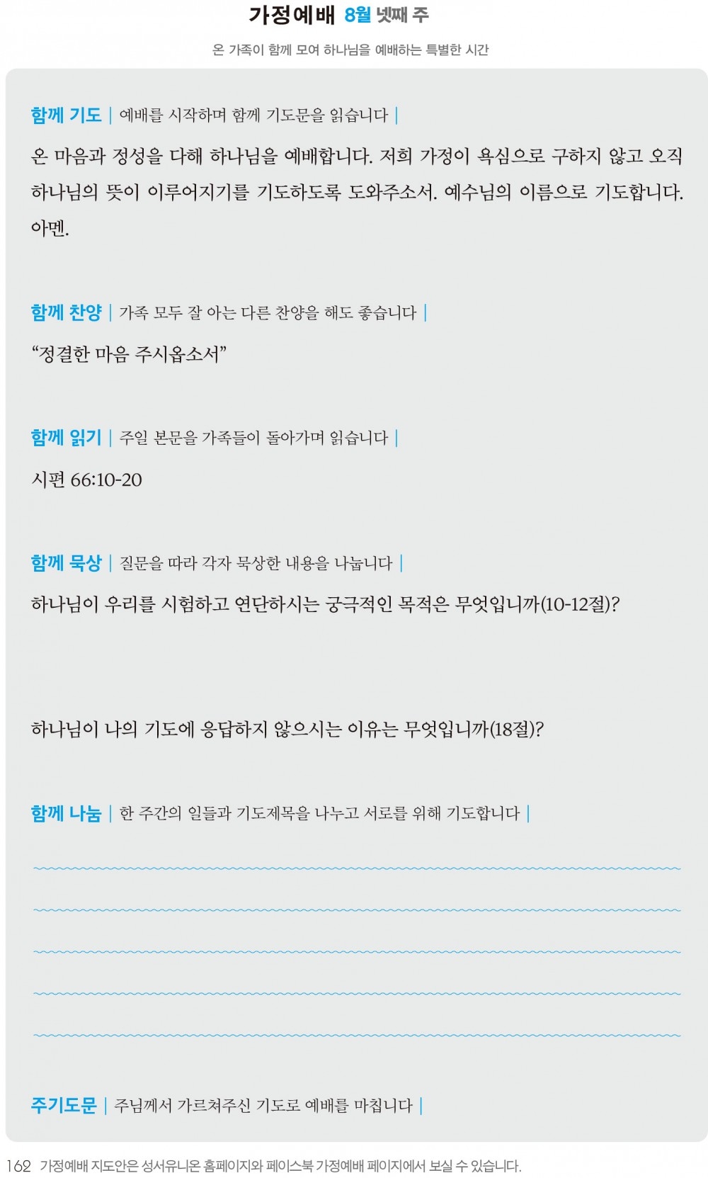 2) 순서지의 내용을 따라 가정예배를 드립니다.